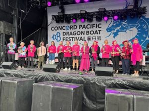 From June 19 to 22 four Robusters joined the International Pink Sisters to take part in the Concord Pacific Dragon Boat Festival. We were there to help the teams from Abreast in a Boat celebrate the 30th anniversary of breast cancer survivor dragon boating and their role in proving the benefits of exercise for cancer patients. Dr. MacKenzie spoke about the experience of setting up the original team and 13 surviving members joined him on stage.